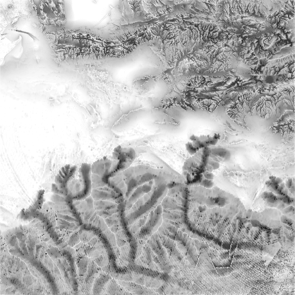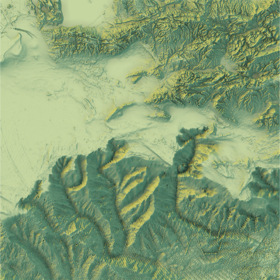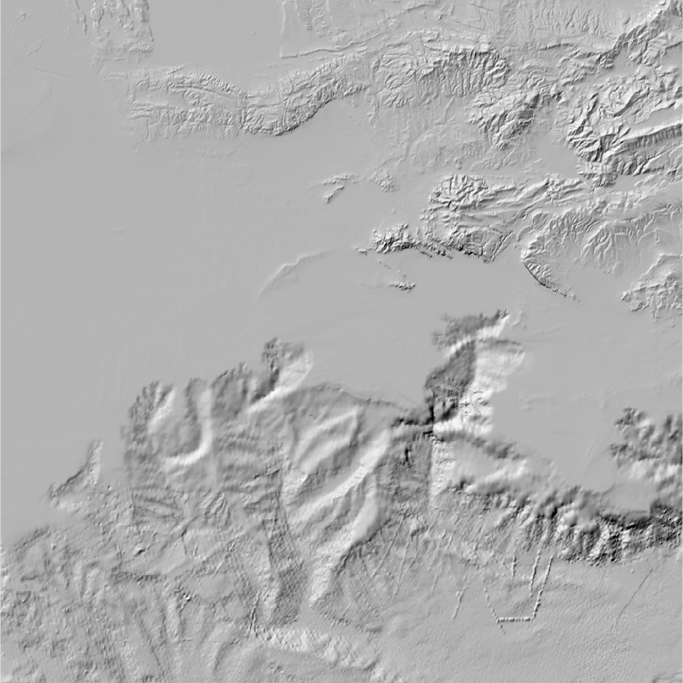 On peut visualiser des données d’élévation avec l’ensemble des couches d’ombrage.