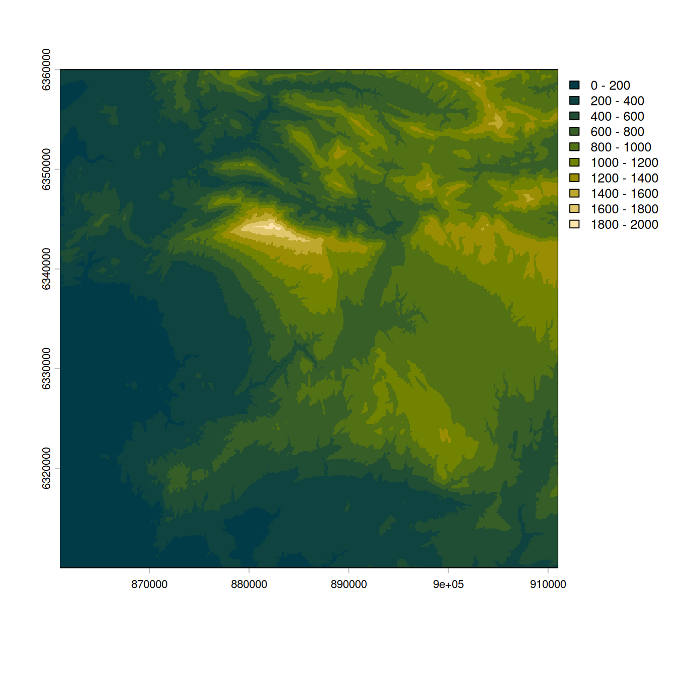 terra::writeRaster(BDALTI_crop, filename = "ventoux.tif")Visualisation