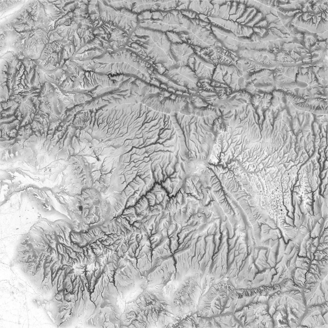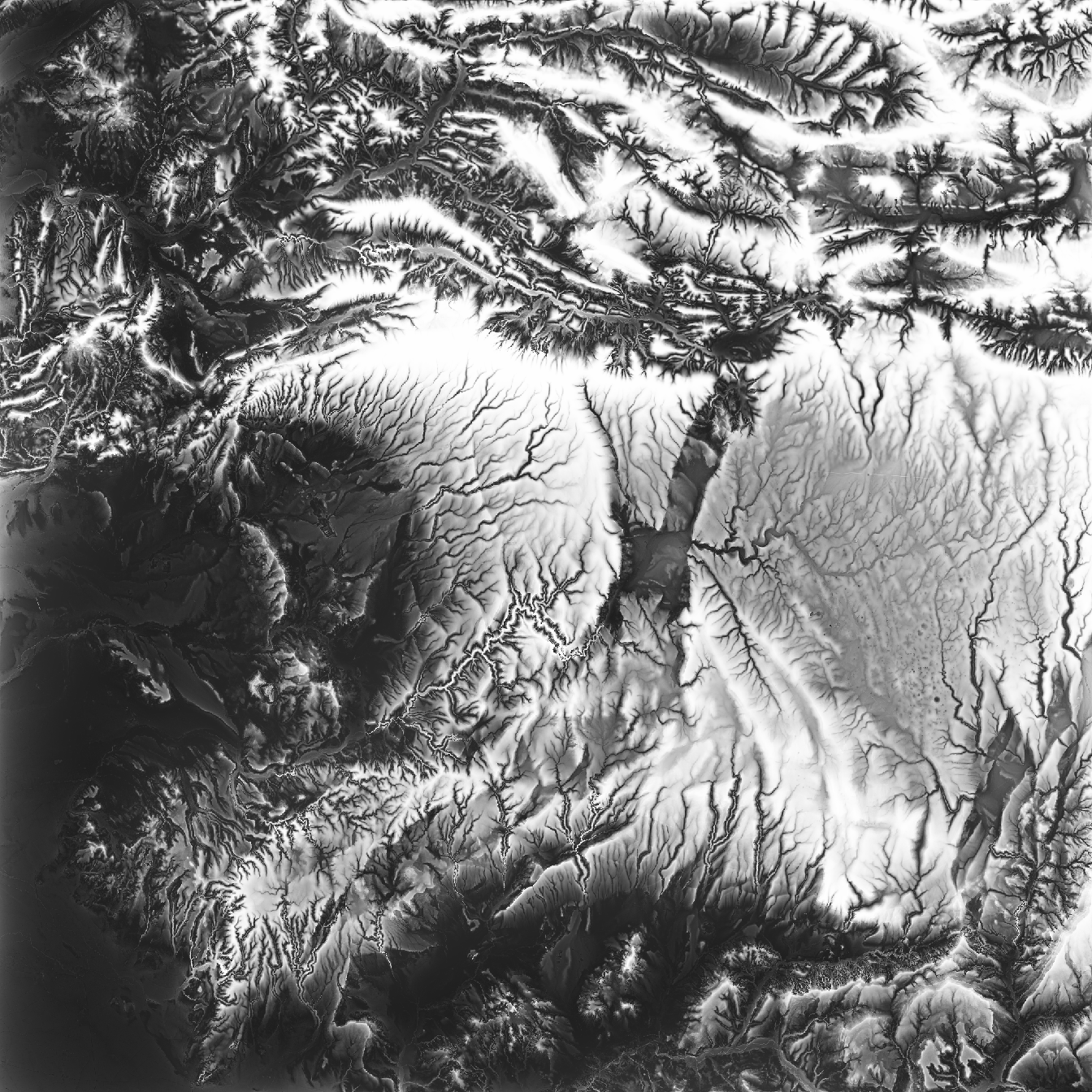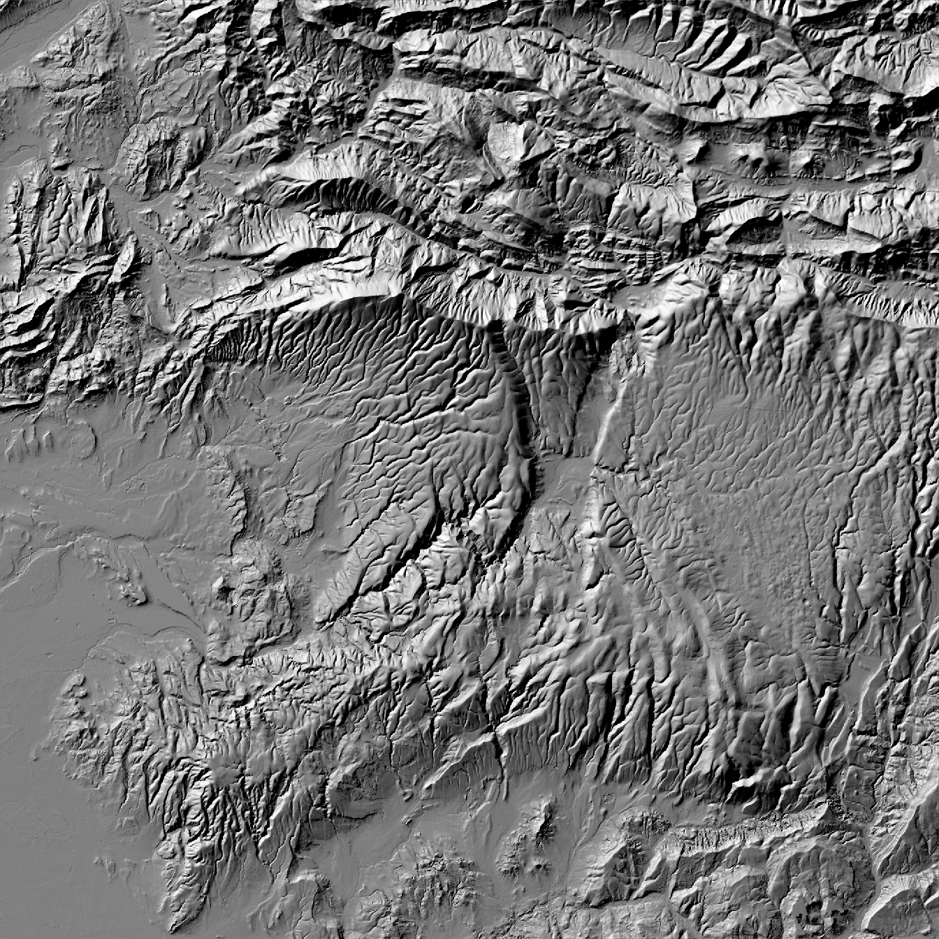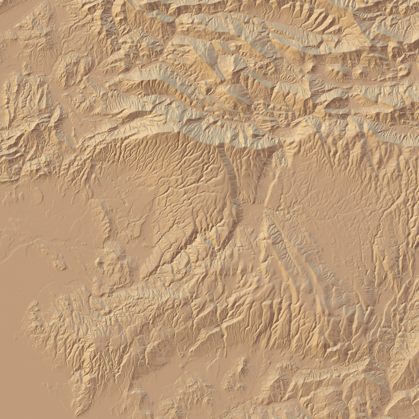 Si les ombrages réalisés sont satisfaisant, on peut les combiner avec les données d’élévation pour visualiser le relief :