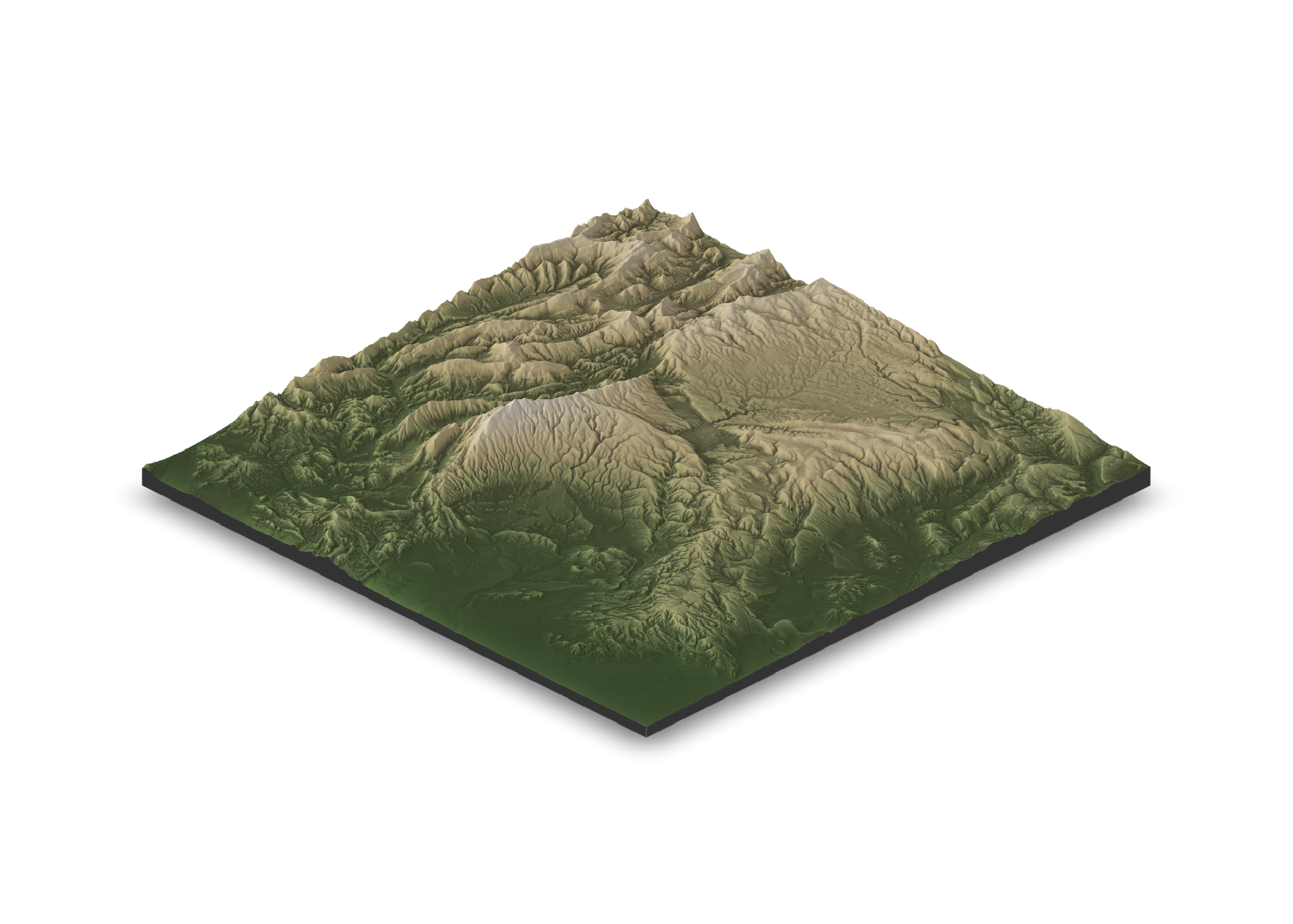raster::writeRaster(ventoux_relief, filename = "ventoux_relief.tif")Finalement, on peut générer un modèle 3D (l’échelle verticale est exagérée d’un facteur 2) :